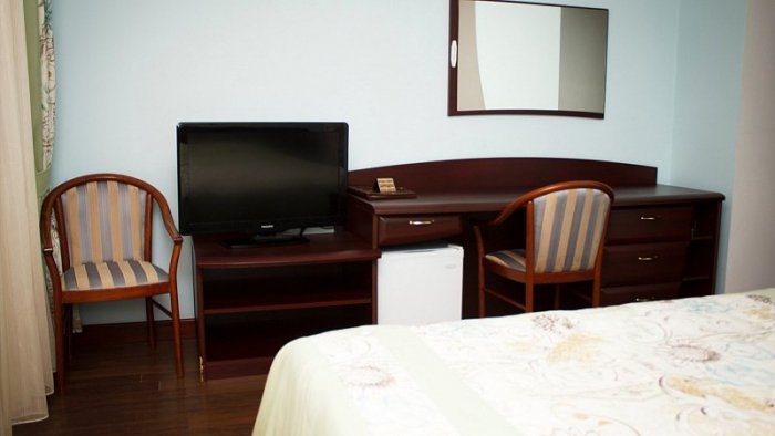 – Стандарт (1 номер). 1 основное место / 0 дополнительных мест. Однокомнатный номер: односпальная кровать, прикроватная тумба, стол, стул, мини-бар, телевизор. Санузел: душевая кабина или ванна, раковина, фен, халат, тапочки, набор полотенец, умывальные принадлежности (зубная щетка, зубная паста, разовое мыло, разовый шампунь), унитаз. Площадь номера: 14 кв.м.