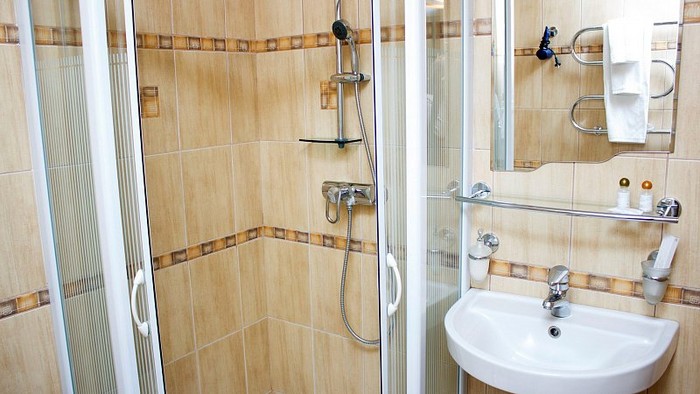 Санузел: душевая кабина или ванна, раковина, фен, халат, тапочки, набор полотенец, умывальные принадлежности (зубная щетка, зубная паста, разовое мыло, разовый шампунь), унитаз.