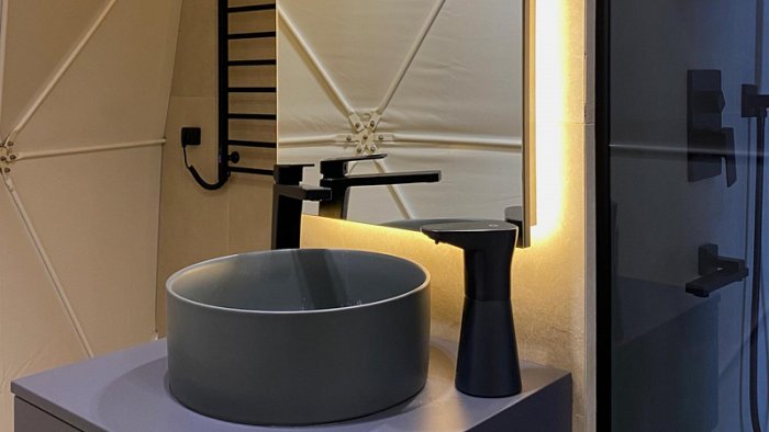 Гостевой дом Harmonia пердставлен несколькими теплыми купольными домами-сферами со своей большой террасой и гриль-зоной близ дома. Гостевой дом расположен у подножия горы, в хвойном лесу, вдали от шума, в уединении с природой, здесь можно свободно наслаждаться горным воздухом и запахом сосен и елей.