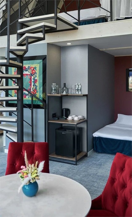 65 м2, 2-уровневый номер (винтовая лестница, не рекомендуется размещение с детьми до 6 лет)