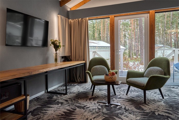 1-этажное шале на 2 номера с отдельным входом и террасой. Между номерами имеется переход, который может быть закрыт, либо открыт, если номера были объединены в один большой номер по запросу | 2 осн | 1 | 2-спальная | 38 м2 номер с возможностью объединиться с категорией Шале Twin Коннект в один большой номер панорамные окна, прикроватные столики, вешалка для одежды, шкаф, столик, два кресла, телевизор, мини-бар, чайник, кофейная станция, сейф, кондиционер, телефонтерраса (стол, стулья) |