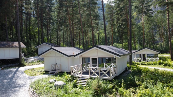 | Проживание (варианты размещения) | благоустроенные номера в 1-этажном шале на 2 номера (Шале Коннект Dabl, Шале Коннект Twin), работают круглогодично благоустроенные номера в отдельностоящих 1-этажном шале (Шале, Люкс), работают круглогодично |