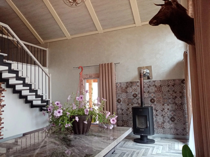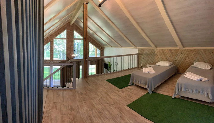 3-этажный коттедж на 5 номеров(зимой – печное отопление) общий холл 1 этажа:телевизор, холодильник, чайник, микроволновая печь, набор посуды, стол, стулья, диван общий холл 2 этажа:зона отдыха с креслами и диванами, стол, стеллаж с книгами, гладильная доска |