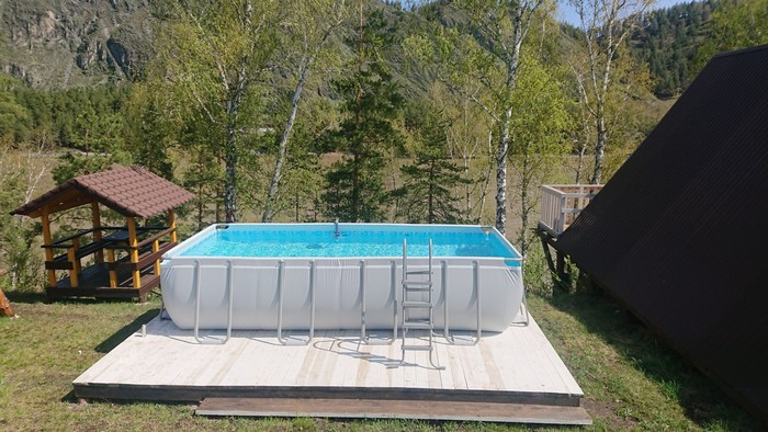 взрослый каркасный бассейн, детский каркасный бассейн, работает с 01.6.25-31.08.25 (начало и конец работы зависит от погодных условий, возможно более позднее открытие/раннее закрытие бассейнов), без подогрева