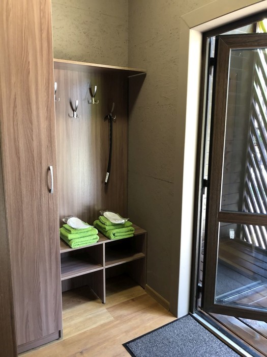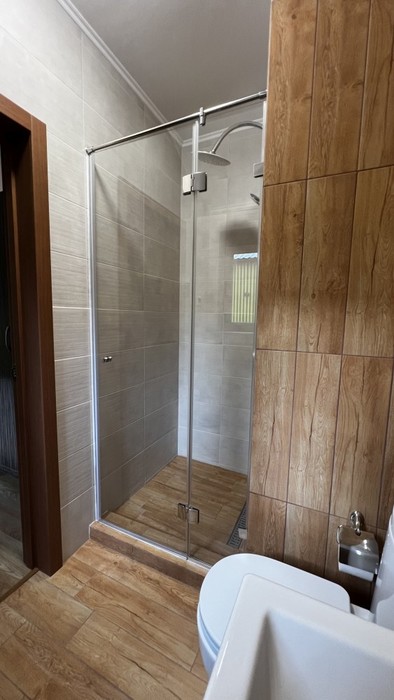 В бане, огромная панорама на реку и дверь не закрывается. Я себя чувствовал не уютно, сделайте шторки, что-ли и сделайте задвижку на дверь. Уехали в восторге, спасибо всему персоналу за отдых.