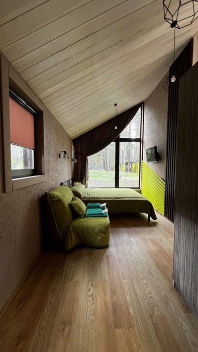 Домик очень теплый, светлый и уютный с панорамным окном.