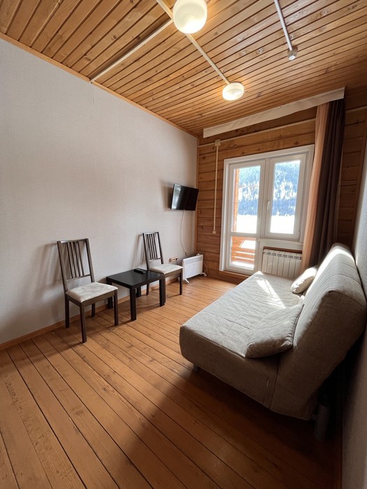 Отель очень понравился. Остановились семьей в двухкомнатном номере. Номер был очень просторным, была кухне. На кухне все необходимое - плита, посуда, микроволновка. Из номера открывался красивый вид на Телецкое озеро. Отель находится практически на берегу озера. На территории отеля есть детская площадка.
