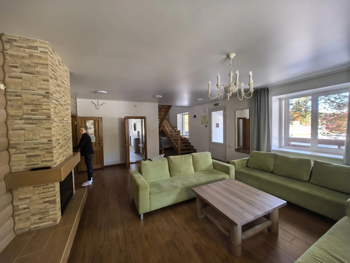 3-этажный коттедж на несколько номеров с общим каминным залом и кухонной зоной, беседки с мангалами и парковкой рядом с большим бассейном | 2 осн 1 доп |