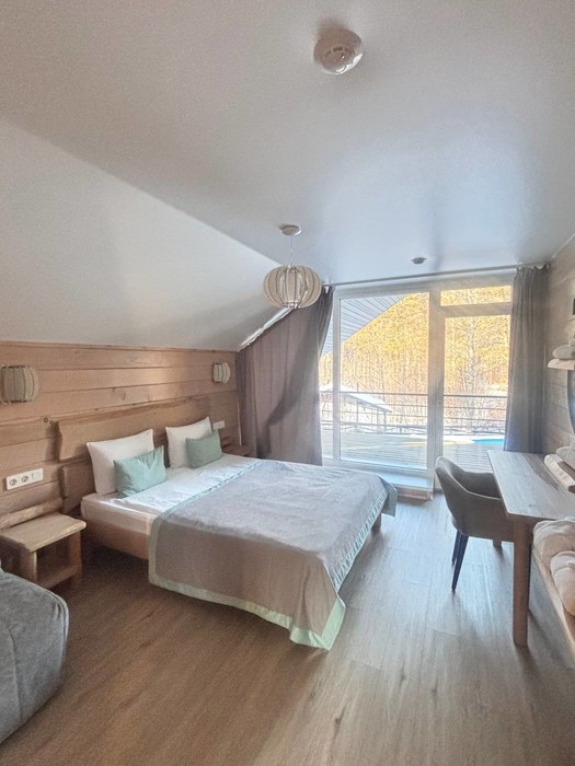 2-этажный шале, на каждом этаже 1 номер с отдельными входами, собственная беседка с печью под казан и мангальной зоной | 4 осн 2 доп |