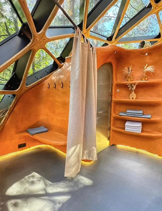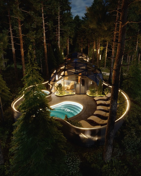 отдельностоящий купольный дом из стекла и дерева с террасой | 2 осн 2 доп |