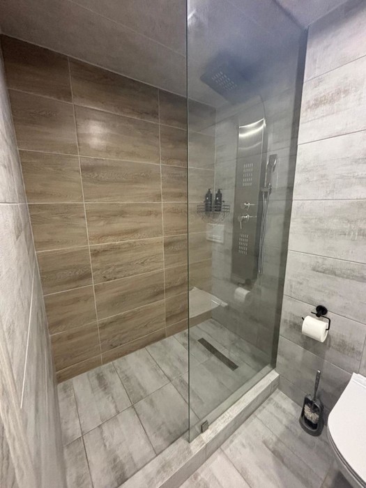 туалет, умывальник, душ, фен, пол с подогревом | большая терраса (стол, стулья) | диван |