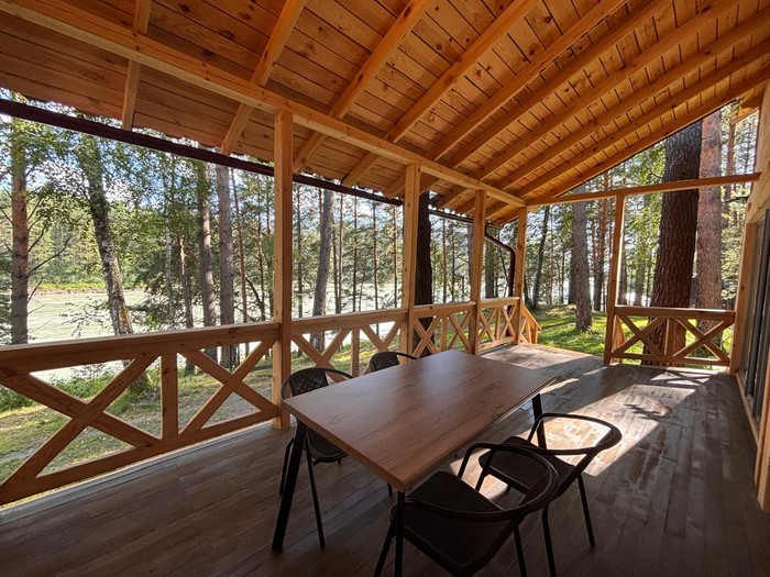 отдельностоящий деревянный дом с панорамными окнами, с террасой с видом на реку и собственной мангальной зоной | 5 осн 2 доп |